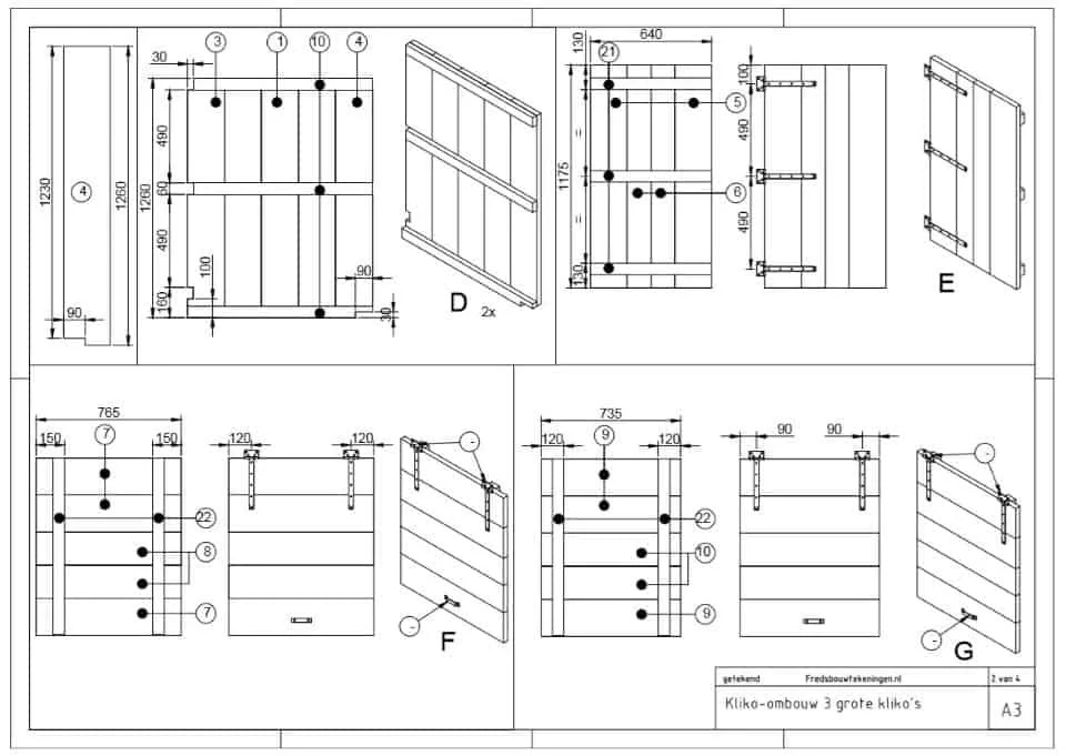 Download gratis bouwtekening voor kliko ombouw. Compleet met benodigde pakketten: staanders, liggers, schoren, zijkanten en achterkant. Perfect voor 3 containers. Start je project vandaag!