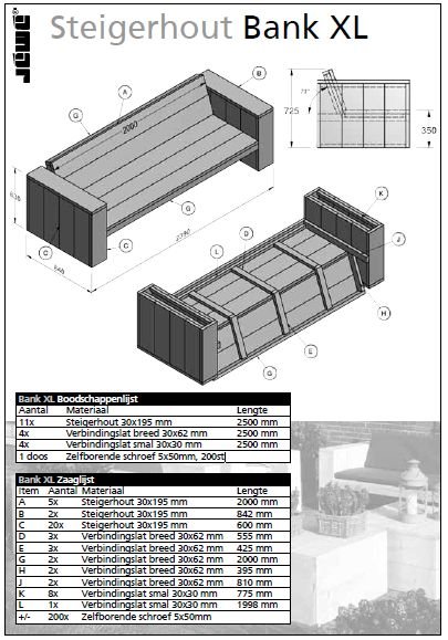 Download gratis bouwtekening voor tuinbank! Let op bij montage, want het is een natuurlijk product en afmetingen kunnen variëren. Maak je eigen tuinbank met onze gedetailleerde handleiding.